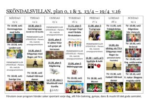 VECKANS PROGRAM v 16 -26, plan 0, 1 o 3